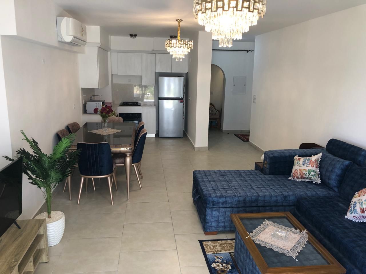 شاليه فاخر مُفروش بالكامل مع أثاث وأجهزة تكييف، 2 غرف نوم و2 حمامات، حديقة 52 متر مربع، جاهز للسكن فورًا.