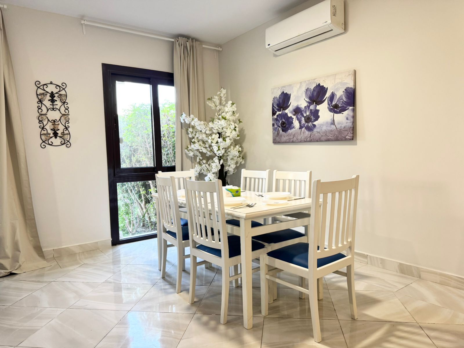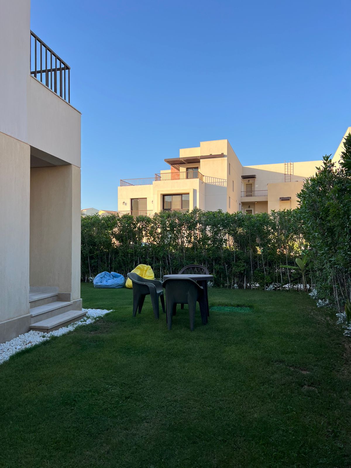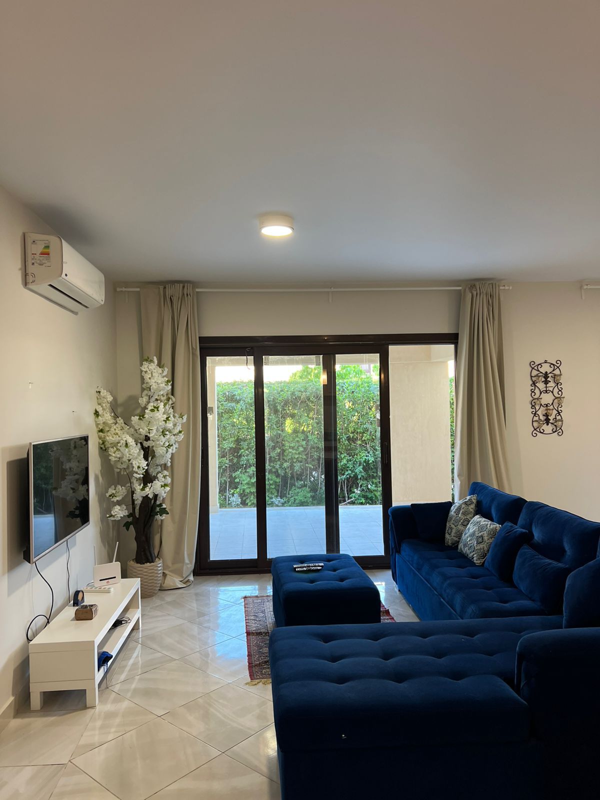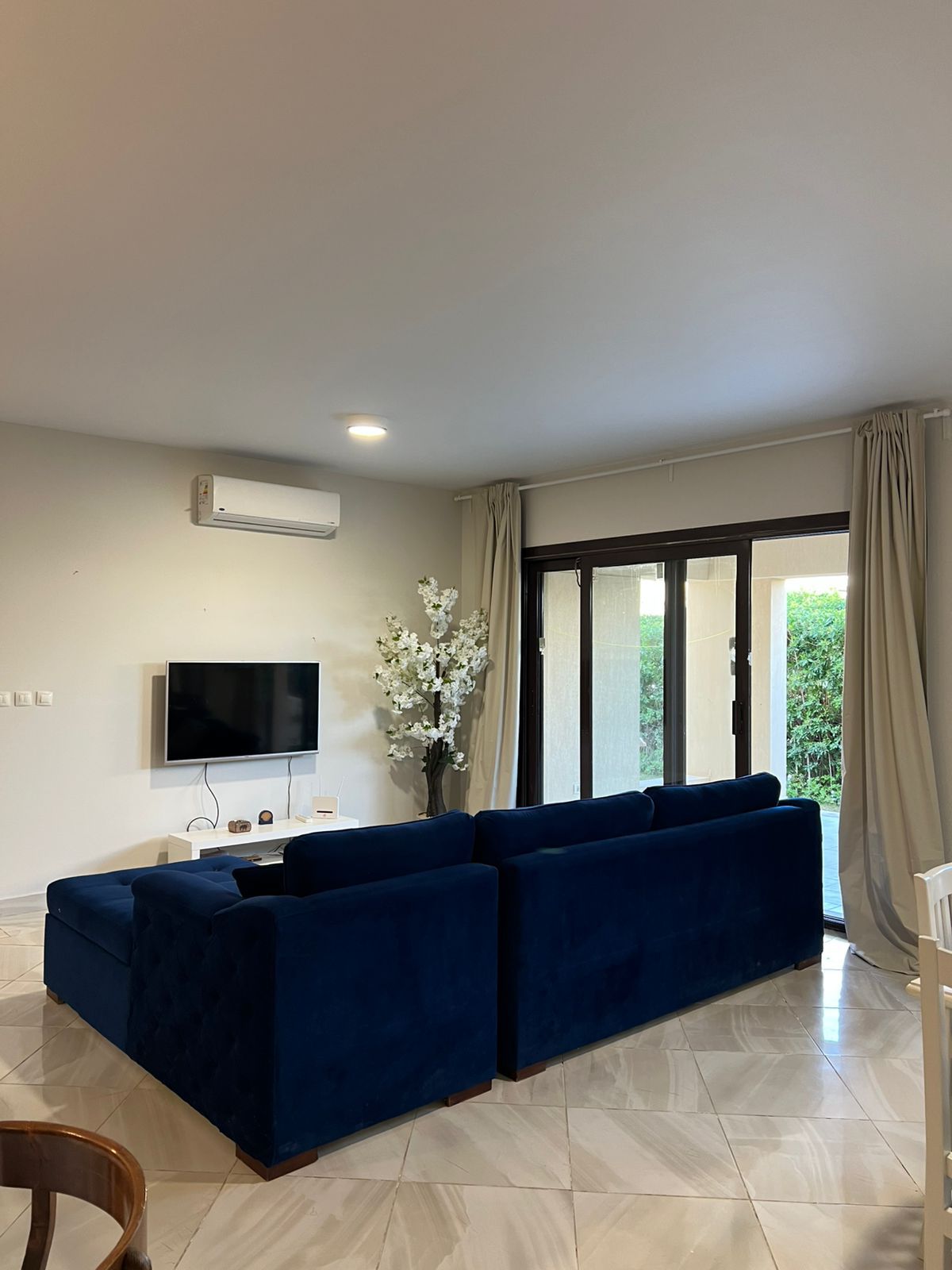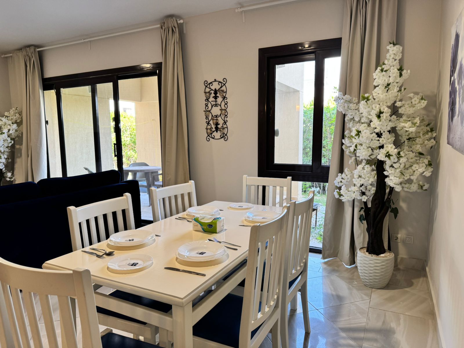 شاليه فاخر متشطب بالكامل بمساحة 130 متر مربع في مراسى، يطل على ملعب الجولف مع 2 غرف نوم و2 حمامات، مفروش بالكامل مع أجهزة منزلية وثلاجات، متاح للإيجار لفترة قصيرة في موسم الصيف.