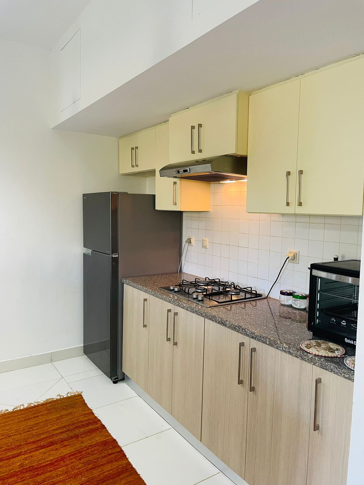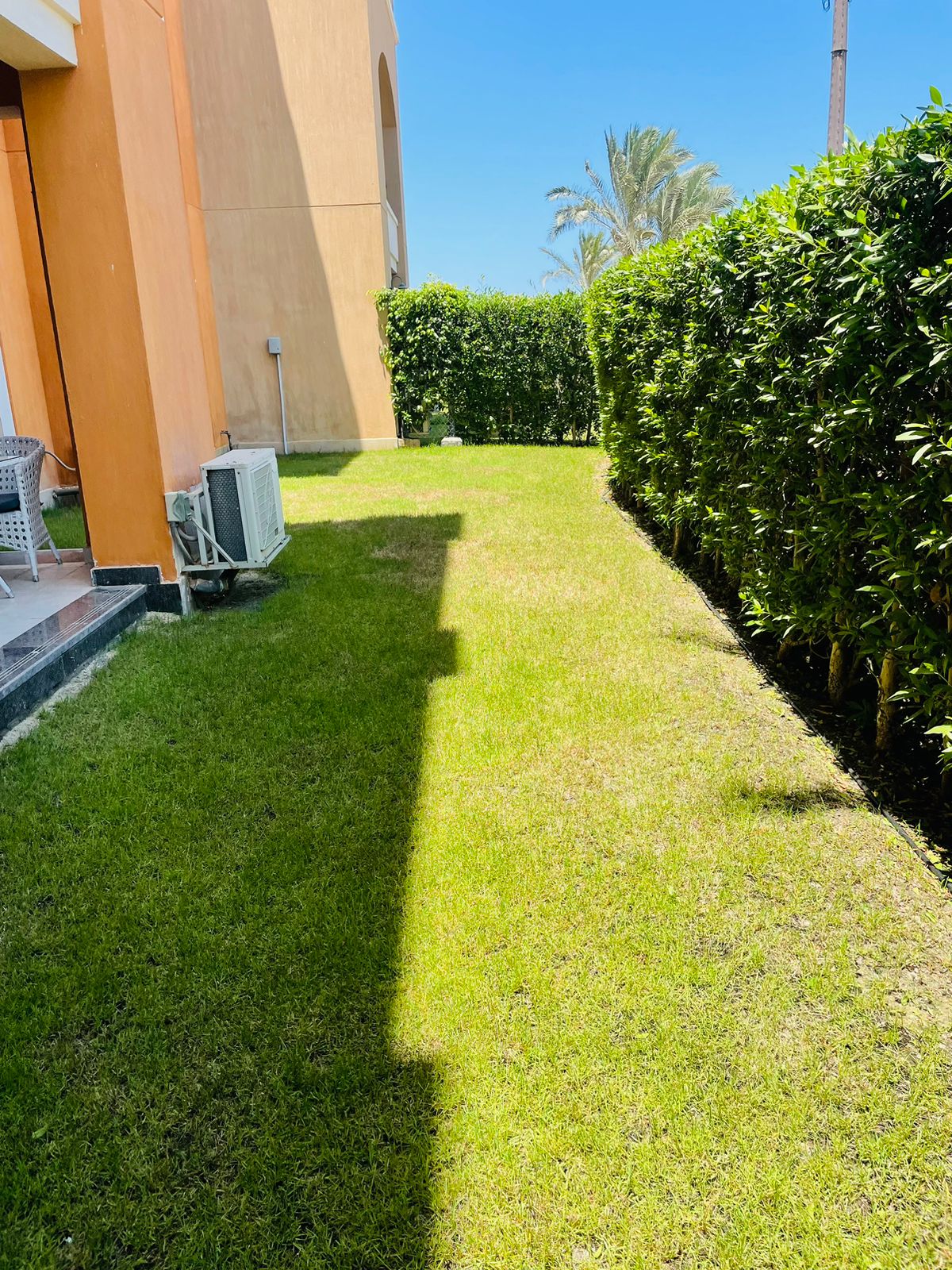 Ground-floor chalet in Marassi - Verdi with 140m² area and 70m² garden. 3 bedrooms, nursery, 2 bathrooms, 2 receptions, 1 terrace. Fully furnished with appliances and ACs. Ready to move in. Daily rent 12,000 EGP.