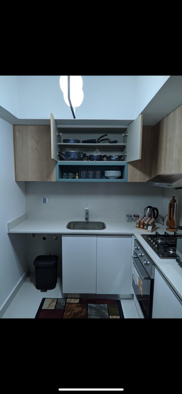 Fully finished studio apartment with pool view in Marassi. Includes a fully equipped kitchen, 1 bedroom, 2 living rooms, and an elevator. Available for rent by duration.
