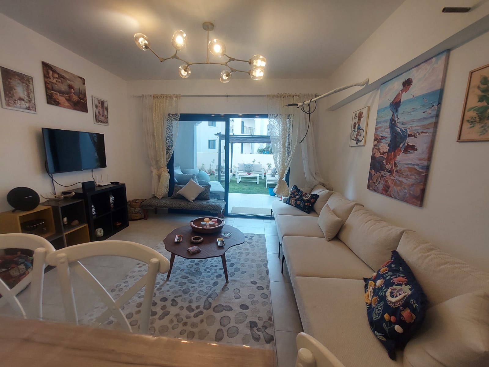 Spacious ground-floor chalet available for rent in Marassi. Features 75m² of living area plus a 50m² garden. Includes 1 bedroom, 1 bathroom, double reception, and terrace. Fully furnished with appliances and AC. Ready to move in. Rent: 7,000 EGP per day.
