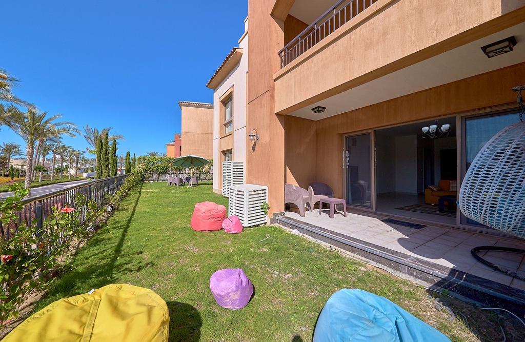 This fully finished luxury chalet in Marassi offers 2 bedrooms, 2 bathrooms, a 116 sqm built-up area, and a 167 sqm garden. Enjoy a stunning golf course view and modern amenities.