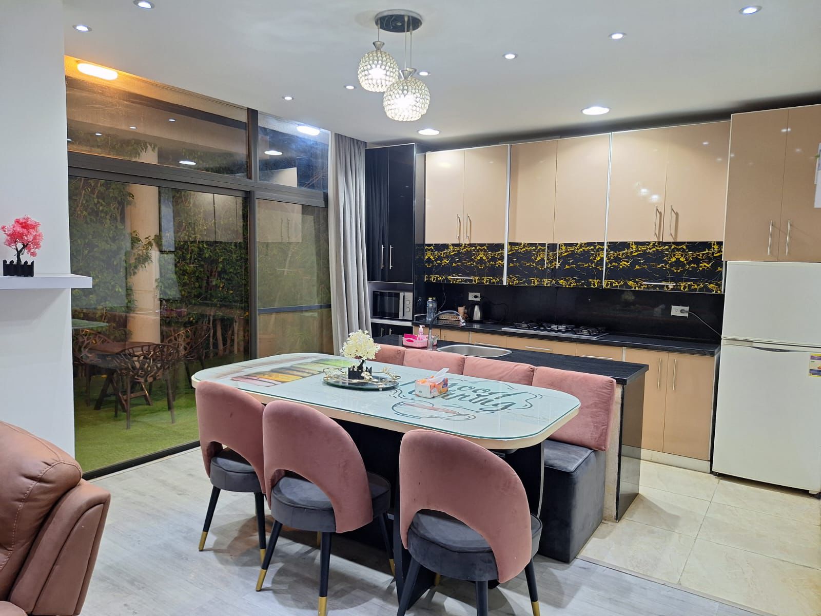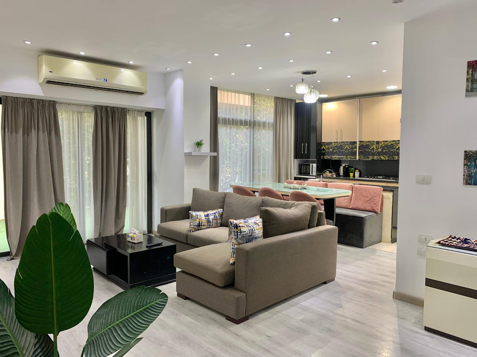 شقه ارضي بجاردن للايجار مفروشه بالتكييفات بسعر مميز في كمبوند ليك فيو ريزيدنس التجمع الخامس مساحه ١٤٤ م ٢ غرف نوم ٢ حمام مفروشه بالكامل